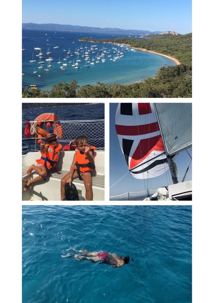 Nous décidons de partir vers l’Est.. Quelques mouillages nous amènent jusque dans la baie de Saint Tropez. Les garçons préfèrent nettement la plage que d’être à bord, ils trouvent le temps long, ne savent pas comment s’occuper. Ils ont besoin de courir, de voir d’autres enfants. Nous qui rêvons de partir plusieurs mois en mer, l’expérience risque d’être compromise! En même temps sortir d’un confinement et se retrouver presque exclusivement tout les quatre, c’est sûrement trop leur demander! Nous faisons donc des petites navigations, et nous accostons sur les plages dès que possible, l’idée et quand même qu’ils passent du bon temps pour avoir envie de continuer l’aventure…